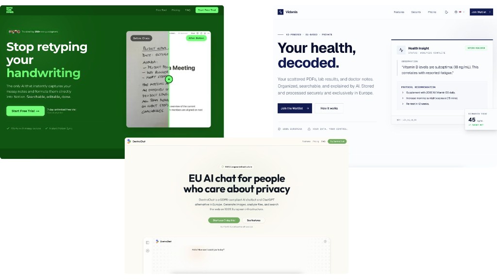 To give you an idea of the results we're seeing: the design for the current Dentro website has been developed from scratch in less than ten hours. It is unique and not based upon a template. We've done the same for NoteThisDown, DentroChat, and Vidanis.